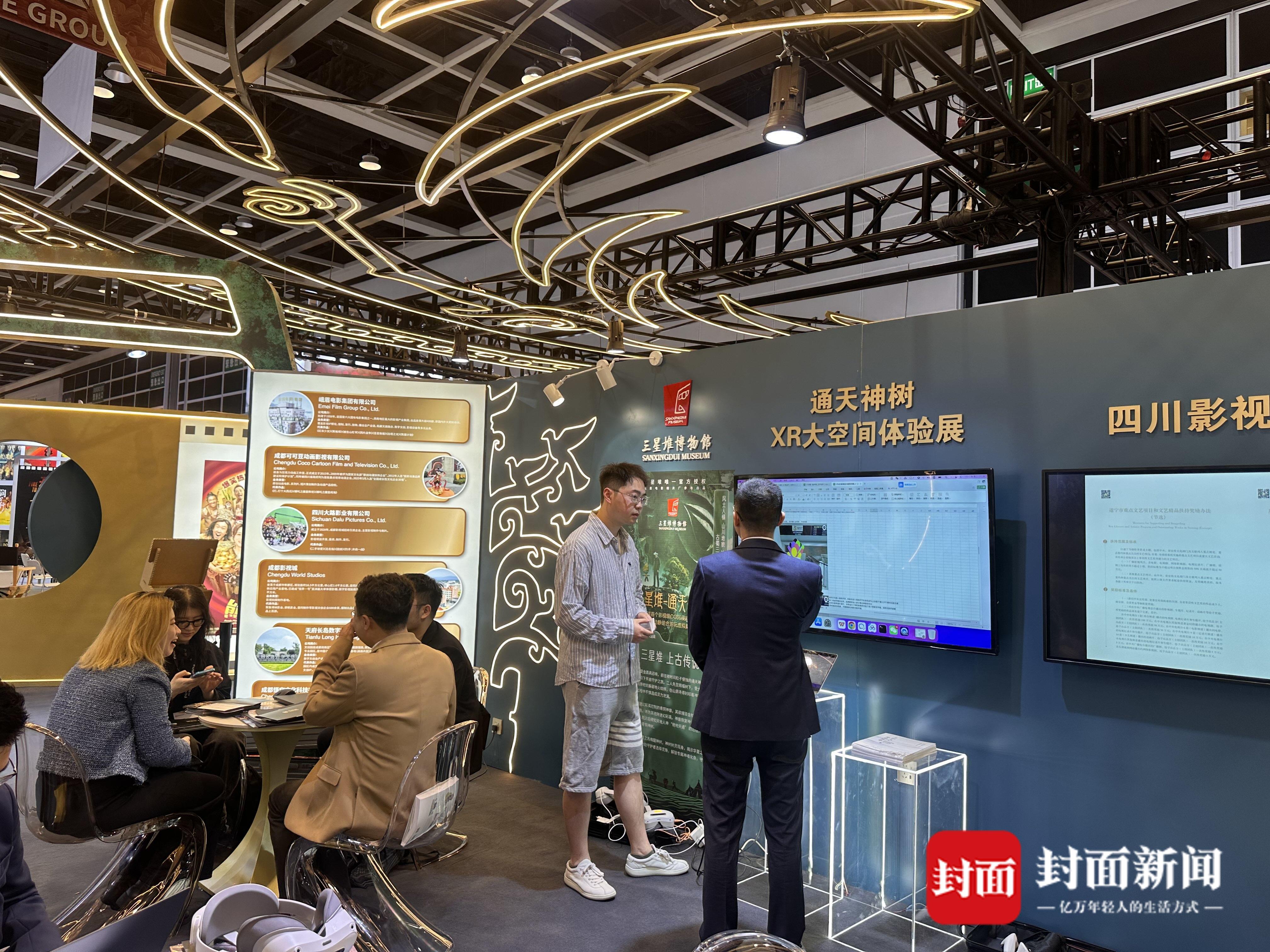 在科技体验区,引入《三星堆 通天神树》XR数字空间,通过虚拟现实技术让观众沉浸式体验古蜀文明,展现四川在虚拟制作与沉浸式内容领域的创新探索。