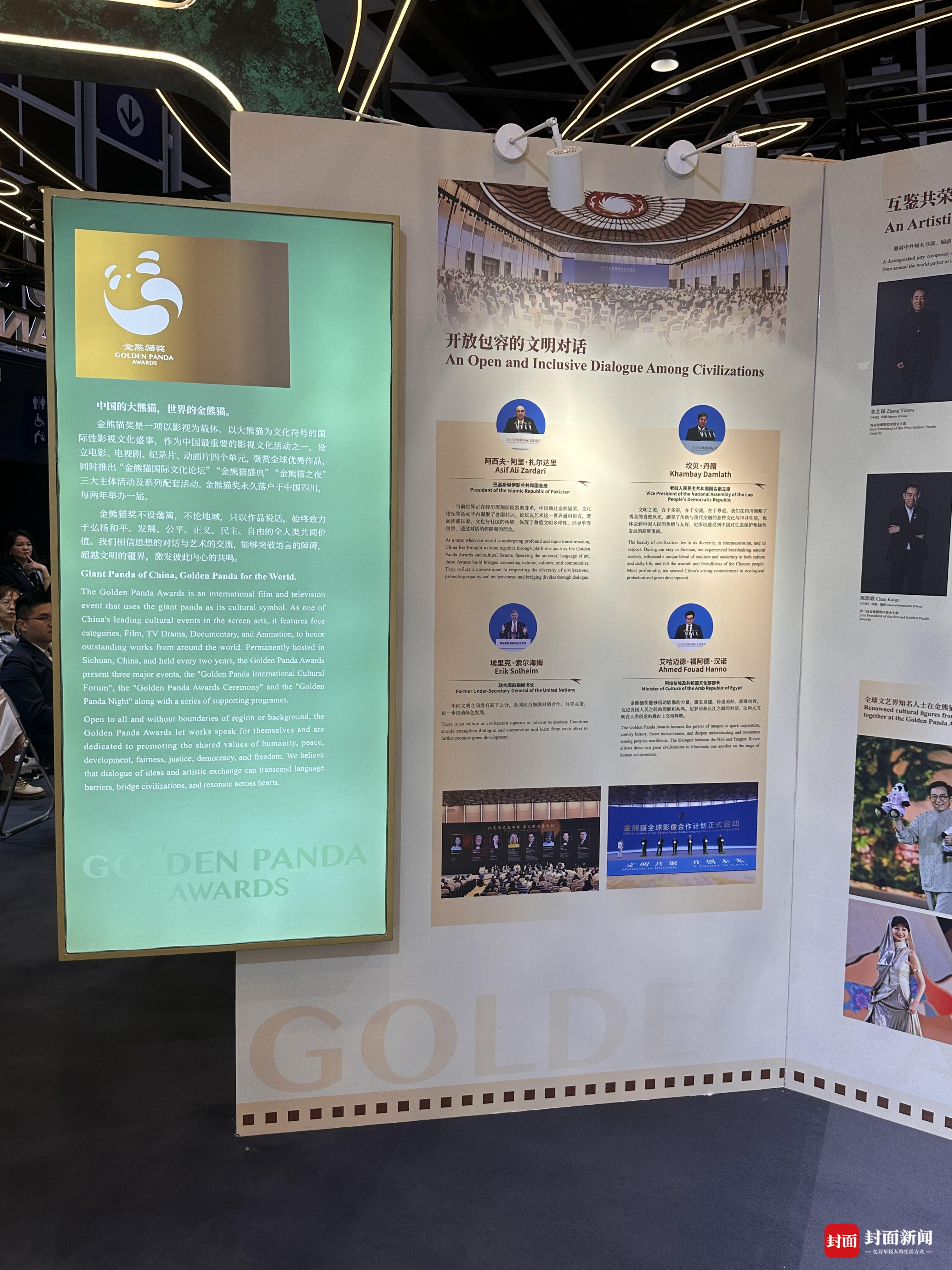 封面新闻记者在现场看到,四川馆设有金熊猫奖、作品展示、机构推介、政策活动、影旅融合、科技体验、多功能区七大板块,全面展现四川影视从内容创作、产业配套到国际传播的全链条发展格局。