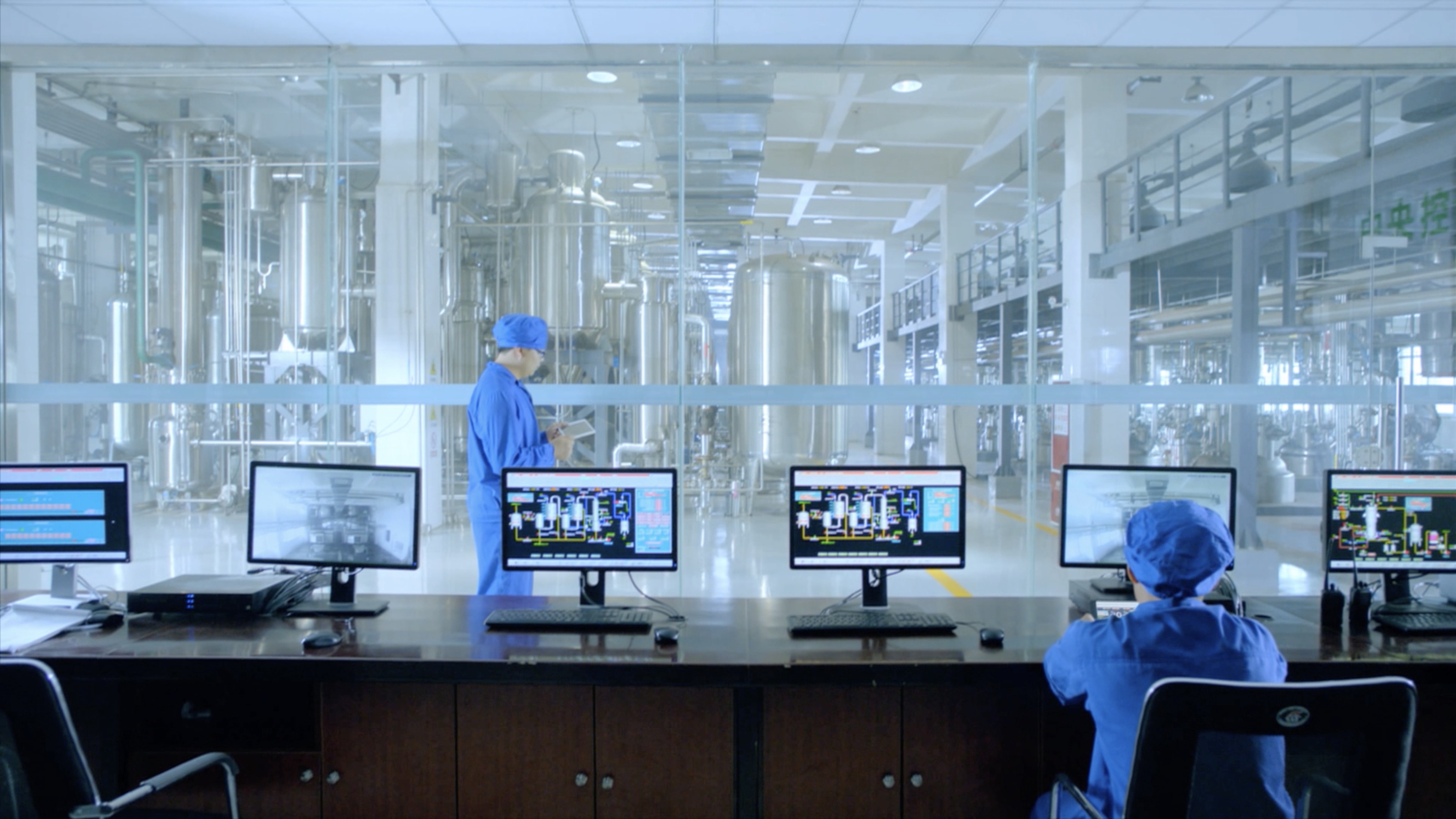 中药配方颗粒生产车间中控室,在这里,中药将通过现代技术手段变成“咖啡粉”。(受访者供图)