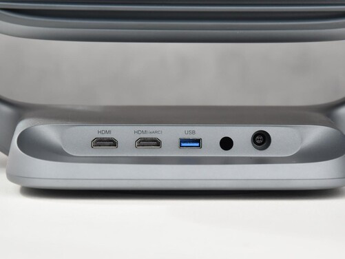 N5Pro作为一台带云台的投影产品,其设计了一个非常人性化的小细节,投影扩展接口没有在投影的背侧,而是全部下移到云台的底部,这样云台调整俯仰角度的时候,就不会扯到接口上的数据线,避免损坏。